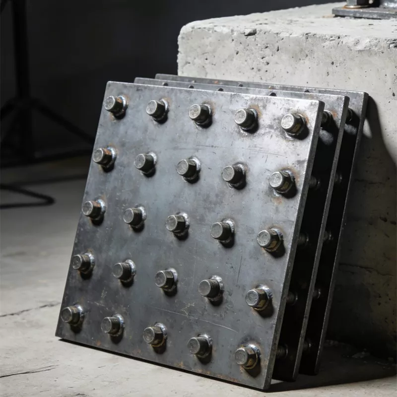 Основная функция встроенной стальной пластины сосредоточена на трех основных положениях, которые являются ключевым носителем для соединения основного корпуса здания и вспомогательной конструкции: в качестве узла передачи нагрузки он может воспринимать собственный вес, ветровую нагрузку и вибрационную нагрузку вспомогательных компонентов, таких как навесная стена и стеклянная перегородка, и равномерно передавать распределенную нагрузку на основную бетонную конструкцию, чтобы избежать структурных повреждений, вызванных локальной концентрацией напряжений; В качестве эталонного позиционирования при установке, основанного на точном позиционировании на этапе предварительной закладки, оно обеспечивает фиксированную привязку для установки последующих опор и компонентов, гарантирует регулярное расположение вспомогательных конструкций и достижение стандартной точности установки, а также значительно сокращает процедуры вторичной обработки и регулировки на месте; В качестве гарантии структурной стабильности он образует прочную интегрированную конструкцию с заливкой бетона, эффективно улучшает стабильность соединения между внешними компонентами и основной конструкцией, повышает общие противоопрокидывающие и антивибрационные возможности здания и продлевает срок службы вспомогательных конструкций здания.