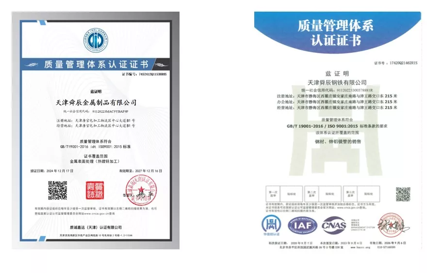 · Высокая точность размеров: толщина стенок одинакова (допуск ±5%), а внешний диаметр постоянен, что облегчает подключение и установку. · Высокая коррозионная стойкость: горячее цинкование (слой цинка ≥80 г/м²), срок службы против коррозии на открытом воздухе до 30 лет.