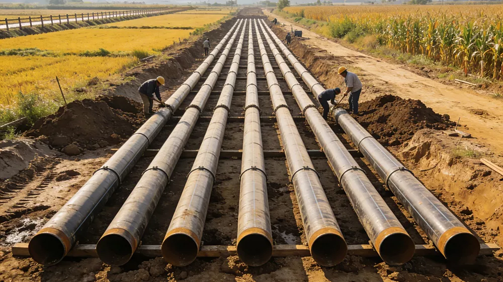 Требования к проекту: Необходимо проложить магистральный газопровод высокого давления, подходящий для сложных ландшафтов, таких как пустыни и горы. Материал труб должен иметь класс выдерживаемости давления ≥ 6,3 МПа, быть устойчивым к геологическим просадкам и коррозии, иметь возможность быстрой поставки партиями для обеспечения длительной работы трубопровода без утечек.
