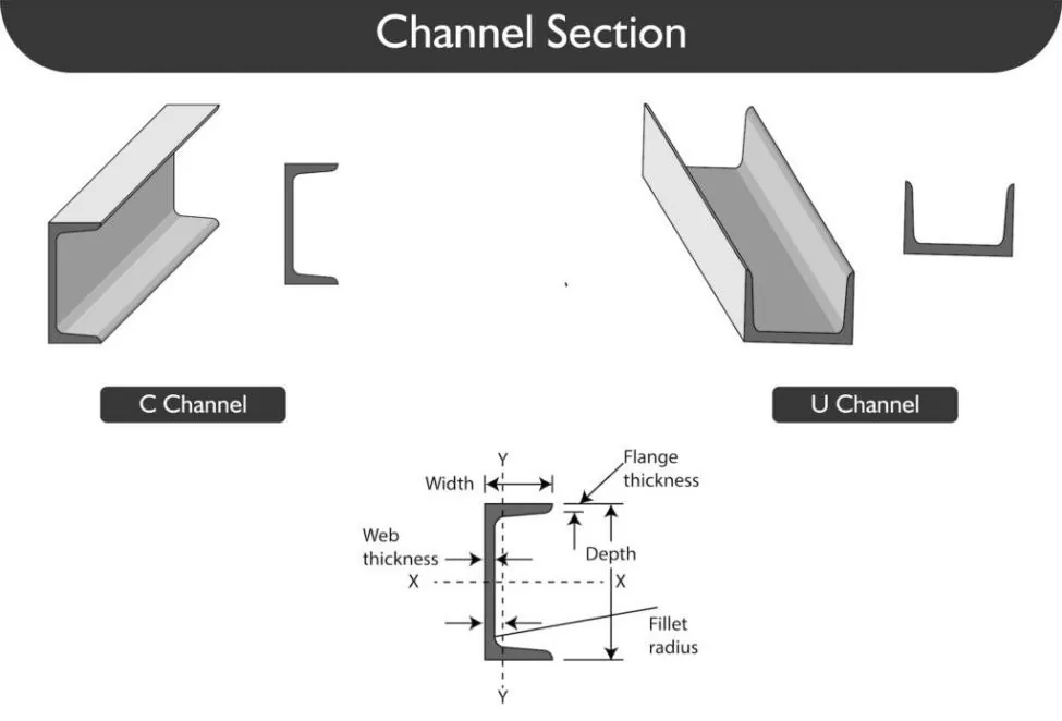 Стальной U-образный профиль производства Tianjin Shunchen Industry представляет собой стальной швеллер с открытыми концами, полученный методом горячей или холодной гибки, с U-образным поперечным сечением и превосходным сопротивлением изгибу и кручению.